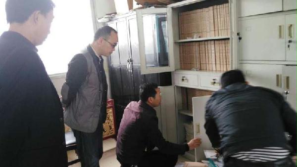 图为局长朱新安、副局长杨立冬在安丰乡档案室现场指导接收工作